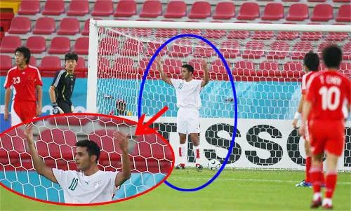 当年伊朗球员过掉王大雷,在空门前停球庆祝。